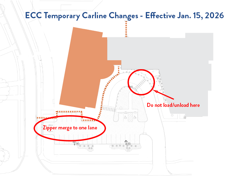 To make room for construction of new sidewalks as part of the Early Childhood Center expansion, there will be two changes to the carline beginning Thursday, Jan. 15: